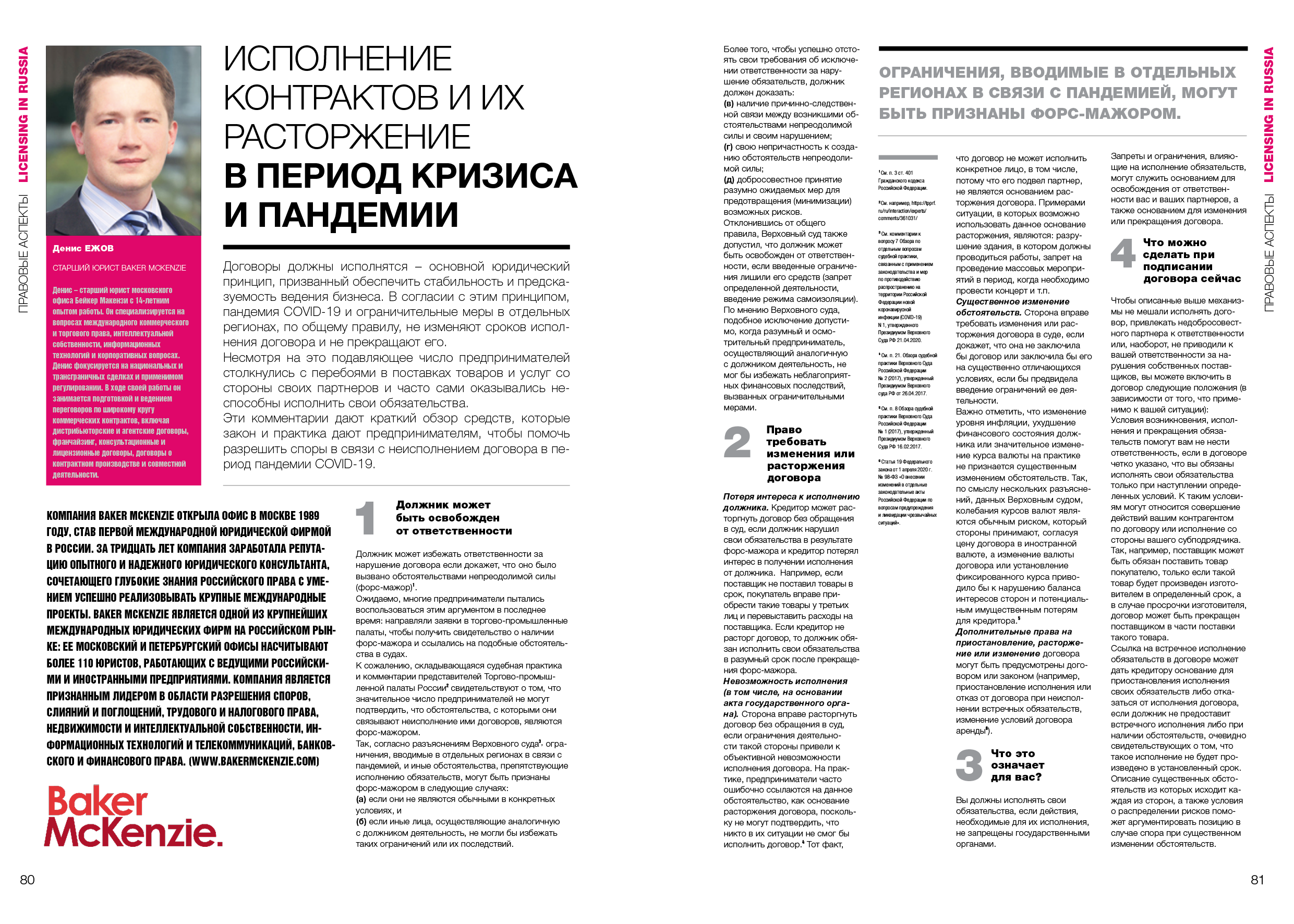 Исполнение контрактов и их расторжение в период кризиса и пандемии